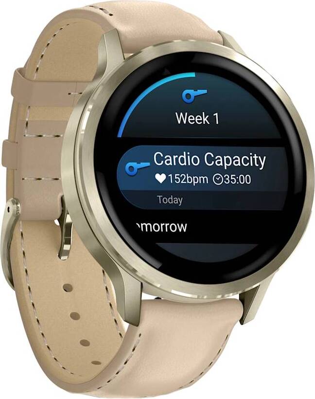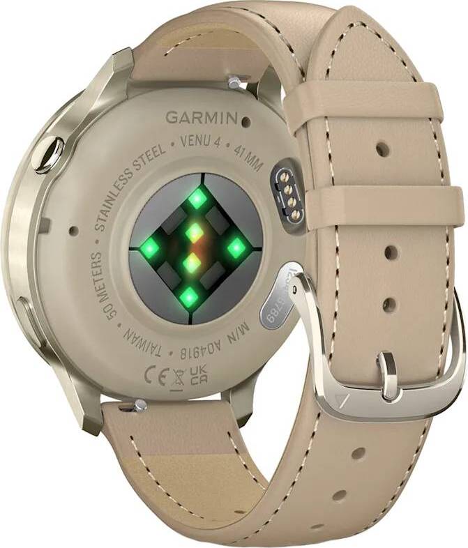 Смарт-часы Garmin Venu 4 - 41 mm Lunar Gold/Light Sand Leather оснащенные передовыми функциями для здоровья и фитнеса, станут вашим надежным помощником на запястье, который поможет вам лучше понять свой организм и принимать более здоровые решения.