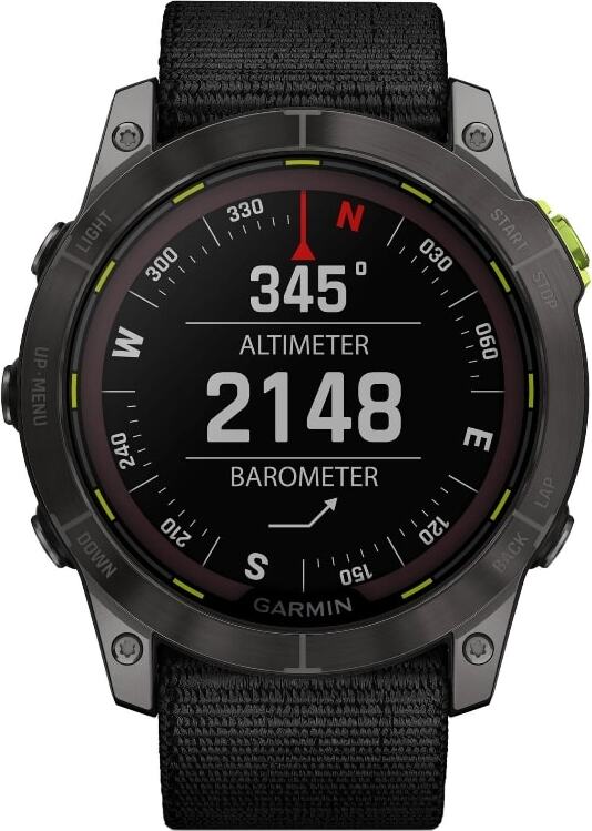 Смарт-часы Enduro 2 — это надежный спортивный гаджет, в котором можно плавать/ездить/бегать/соревноваться почти месяц, даже не задумываясь о зарядке. Модель оснащена самым ярким светодиодным фонарем среди всех часов Garmin, прежде всего эта функция пригодится триатлонистам и ультрамарафонцам. Также нужно отметить обновленное программное обеспечение, включая приложение для приключенческих гонок с функцией скрытия GPS-данных, функцию регулировки скорости в зависимости от уклона, навигацию с руководством по картам Nextfork и технологию SATIQ, снижающую расход аккумулятора.