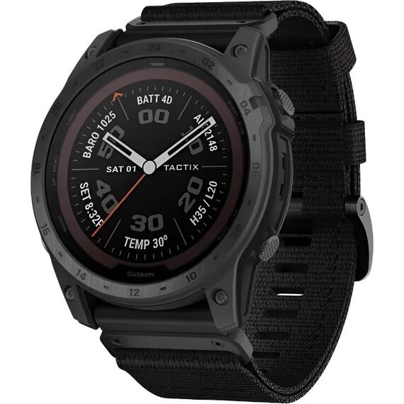 Garmin Tactix 7 Pro — тактические GPS-часы с солнечной батареей, встроенным светодиодным фонариком, поддержкой ночного видения и режимом невидимки. Также часы оснащены встроенными топографическими картами, улучшенной двухчастотной навигацией и специальным режимом для прыжков с парашютом. Встроенная память на 32 ГБ позволяет хранить и прослушивать на часах музыку, а также загружать карты.